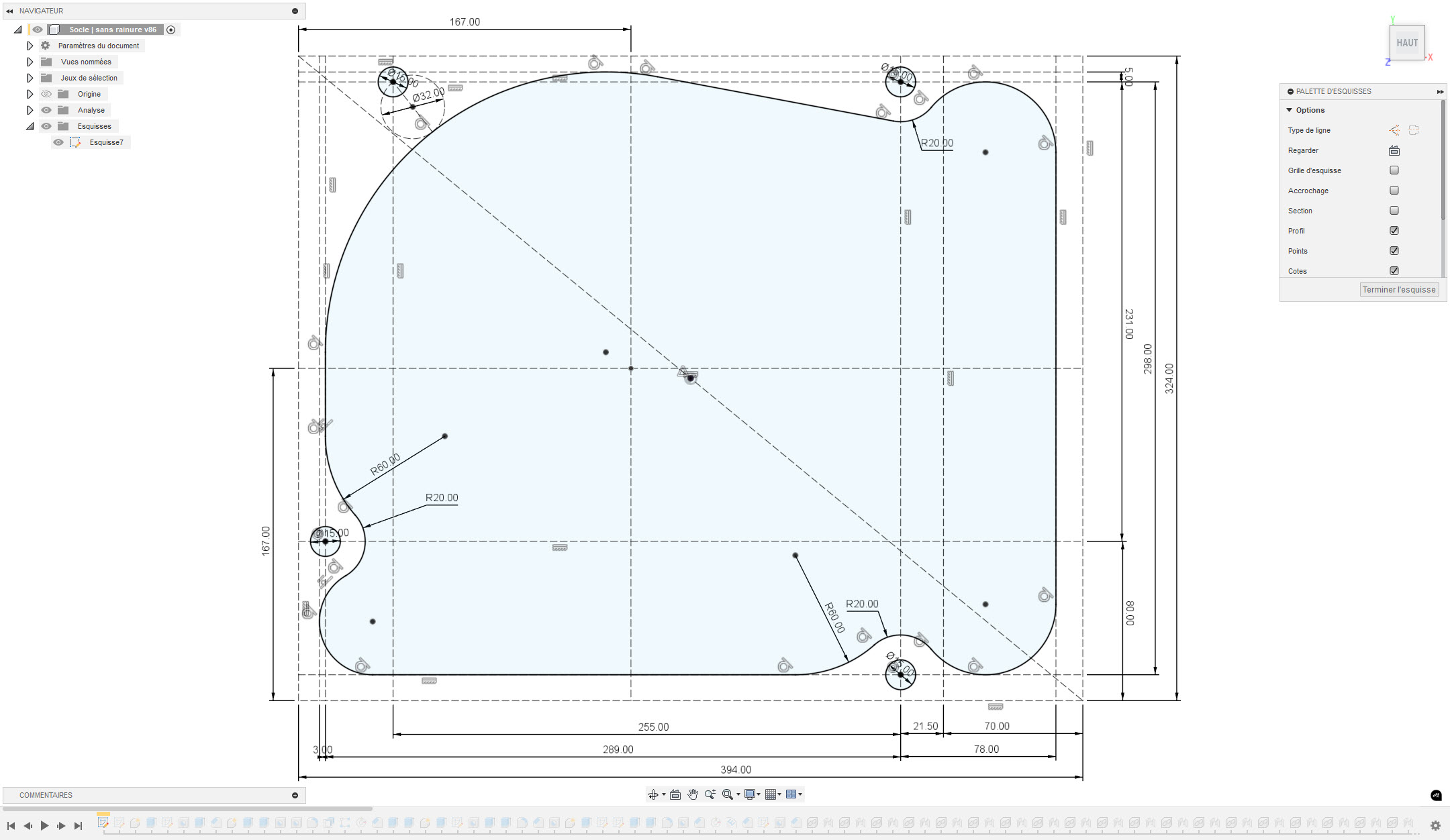 La première étape consiste à retracer le contour intérieur particulier en respectant le positionnement des 4 points d'appui.
